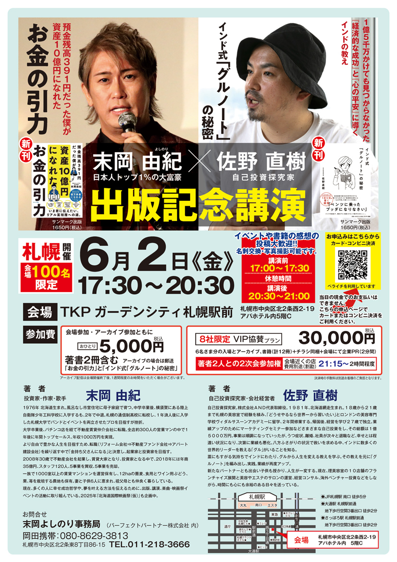 【6月2日 札幌開催】末岡由紀×佐野直樹氏「お金の引力」出版記念講演